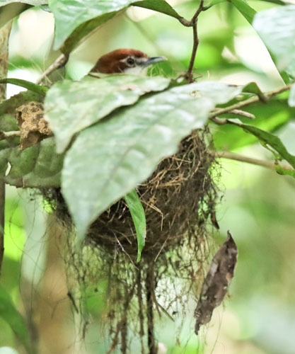 Among the nicer “incidental” new birds of the day were a Brown Goshawk, Little Eagle, Slender-billed Cuckoo-dove, Pink-spotted Fruit Dove, a Barred-Owlet Nightjar, a spectacular Brown-headed Paradise Kingfisher, Rufous-bellied Kookaburra, an elusive, diminutive Yellow-billed Kingfisher, Rainbow Bee-eaters, White-shouldered Fairy Wrens, several species of plain and small Gerrygones (gerigonees, phonetically), Black Berrypeckers, Yellow-breasted Boatbill, Black-backed and Hooded Butcherbirds with their crow-like looks and surprisingly beautiful songs, Varied Trillers, Little Shrikethrush, Hooded Pitohui, Spangled Drongo, Chestnut-bellied Fantail, several Monarchs and Flycatchers, Lemon-bellied Flyrobins, Pied Bush-chat and Red-capped Flowerpecker.